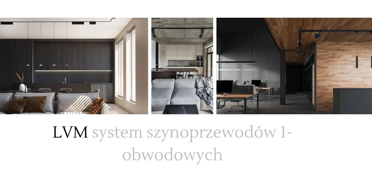 LVM system szynoprzewodów 1-obwodowych to system magnetycznych szynoprzewodów oświetleniowych. Zawiera on wiele elementów i dostępny jest w wersji natynkowej, podtynkowej oraz zawieszanej na linkach. System pozwala nam na utworzenie indywidualnej kompozycji szynoprzewodów. Dzięki specjalnym narożnikom można utworzyć kompozycję szynoprzewodów schodzących z sufitu na ścianę.
