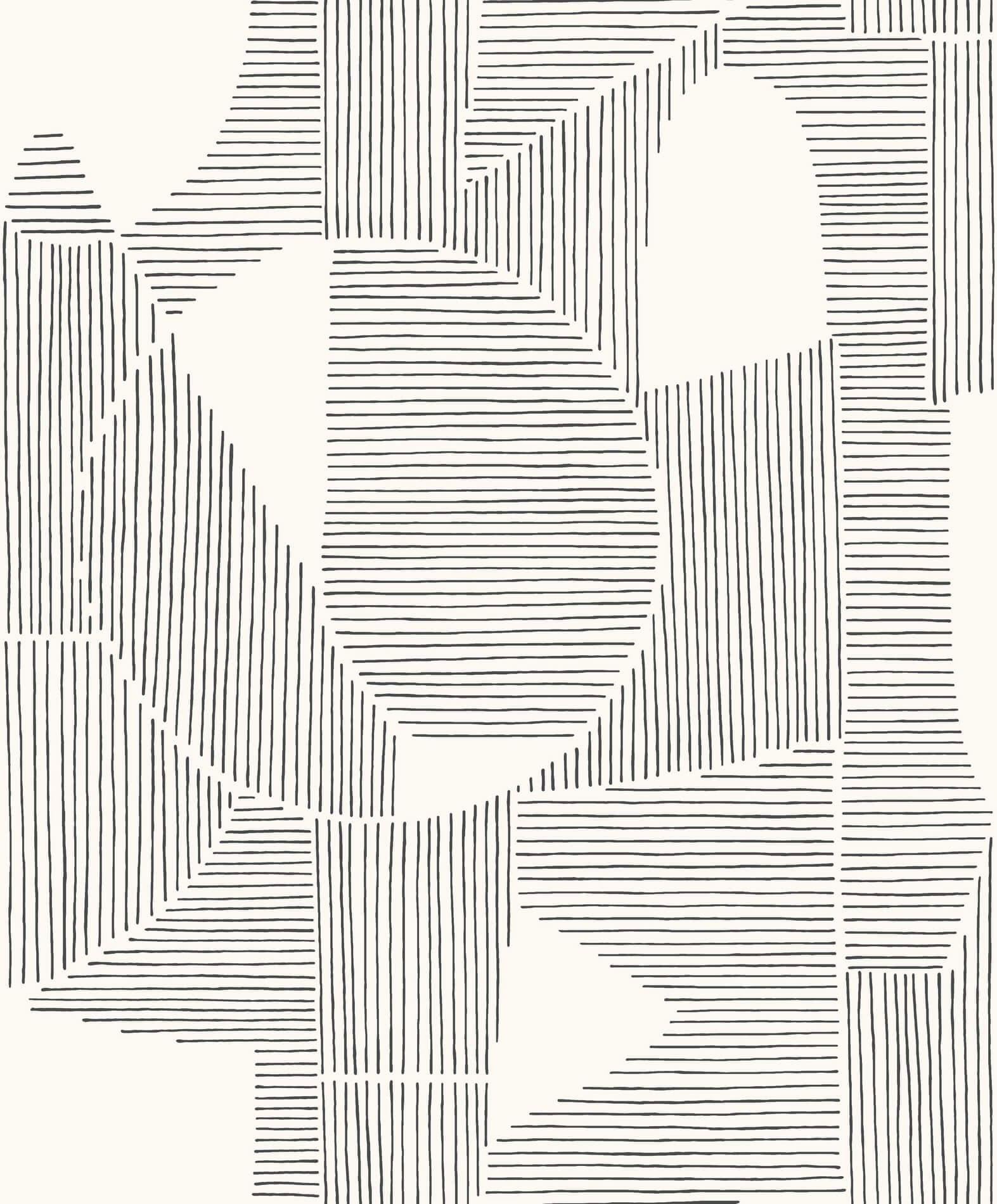 Tapeta geometryczna stworzona została z wyczuwalnych pod palcami czarnych linii i naniesiona na tło w kolorze „złamanej bieli” (off-white). Równoległe linie wyznaczają określony kształt w bardzo graficznym stylu. Projekt został namalowany ręcznie przez Studio Creantes, występuje w pięciu wariantach kolorystycznych. Motyw geometryczny doskonale sprawdzi się w nowoczesnych oraz współczesnych wnętrzach, znakomicie będzie się prezentował na ścianie akcentowej w salonie, jadalni oraz sypialni. Flizelinowe podłoże zapewni sprawny montaż, a dobra odporność na zmywanie oraz działanie światła pozwoli na zamontowanie tapety w miejscach narażonych na zabrudzenia.