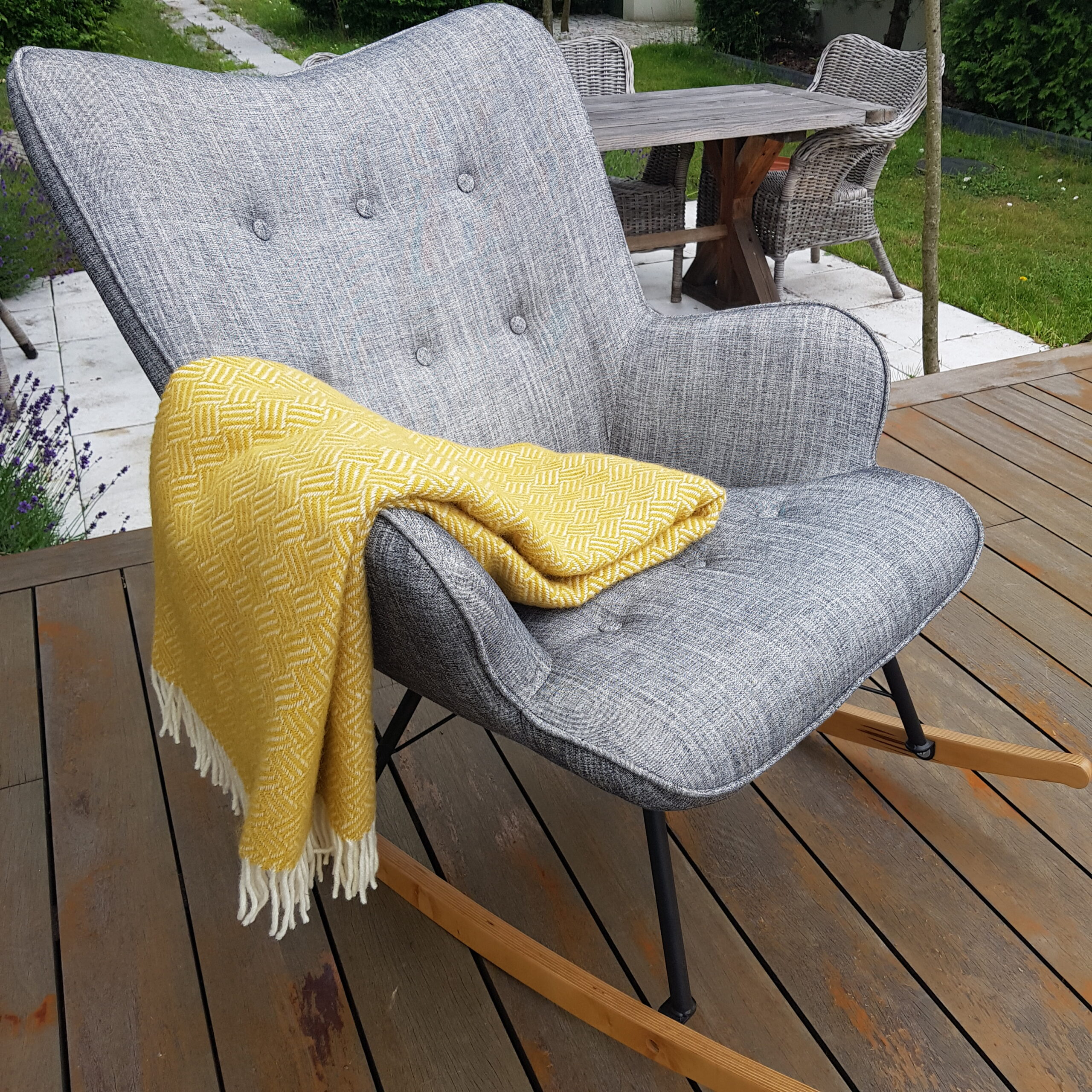 Fotel bujany na drewnianych płozach w stylu skandynawskim. Fotel wykończony tkaniną melanżową szarą o małym splocie. Fotel bardzo wygodny ze względy na wysokiej jakości materiały tapicerskie, z jakich został wykonany. Mebel ten wykonany został w Polsce. TEDDY można zamówić w tej tkaninie tego samego rodzaju ale w innym kolorze. Fotel na zdjęciu w tkaninie nr 13