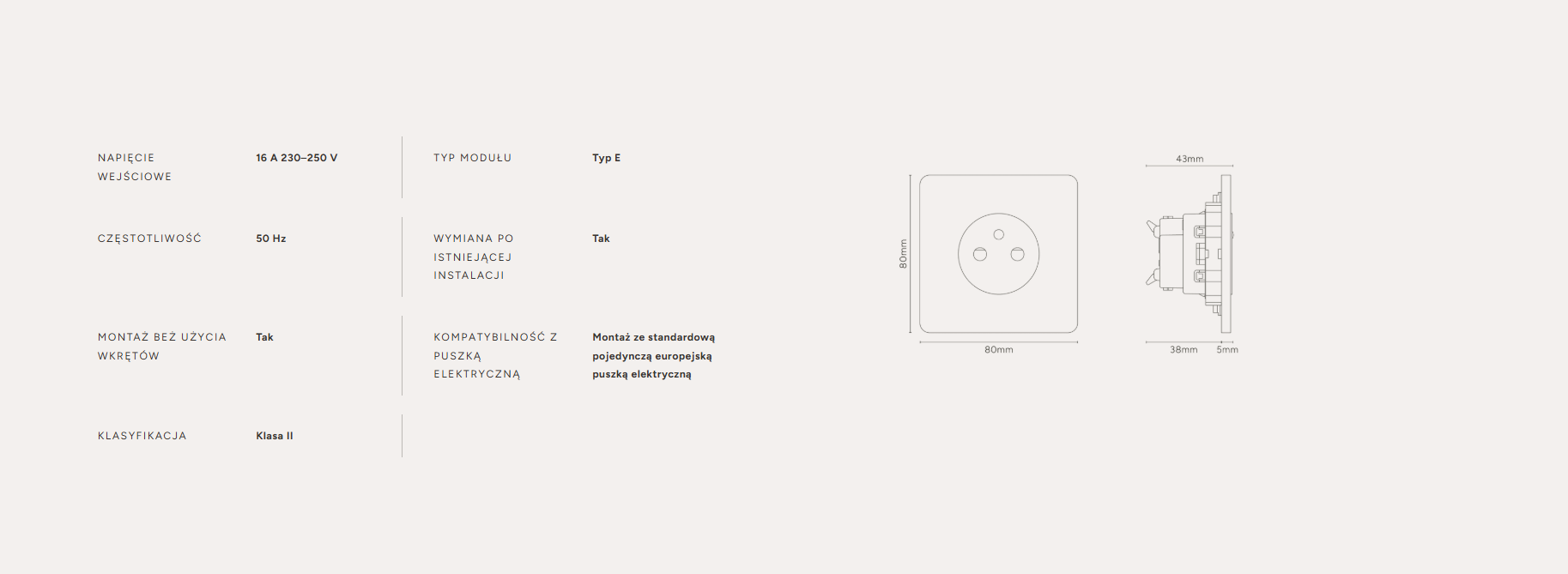 Nasze gniazdo francusko/belgijskie w pojedynczej ramce zostało wykonane z myślą o prostocie i ponadczasowym designie, który pasuje do każdego wnętrza.