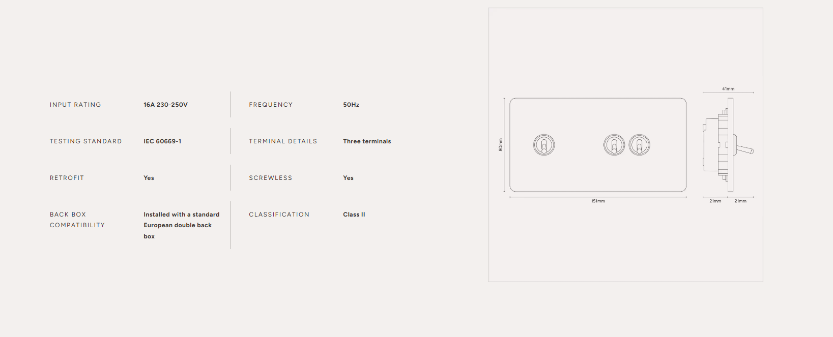 Nasz dwukierunkowy włącznik dźwigniowy to nowoczesna wersja klasycznego projektu. Stworzyliśmy go z myślą o elegancji i klasyce, dzięki czemu wygląda ponadczasowo w każdym pomieszczeniu.