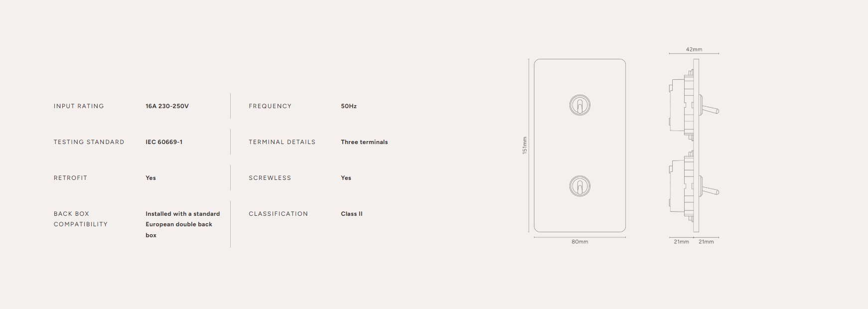 Nasz dwukierunkowy włącznik dźwigniowy to nowoczesna wersja klasycznego projektu. Stworzyliśmy go z myślą o elegancji i klasyce, dzięki czemu wygląda ponadczasowo w każdym pomieszczeniu.