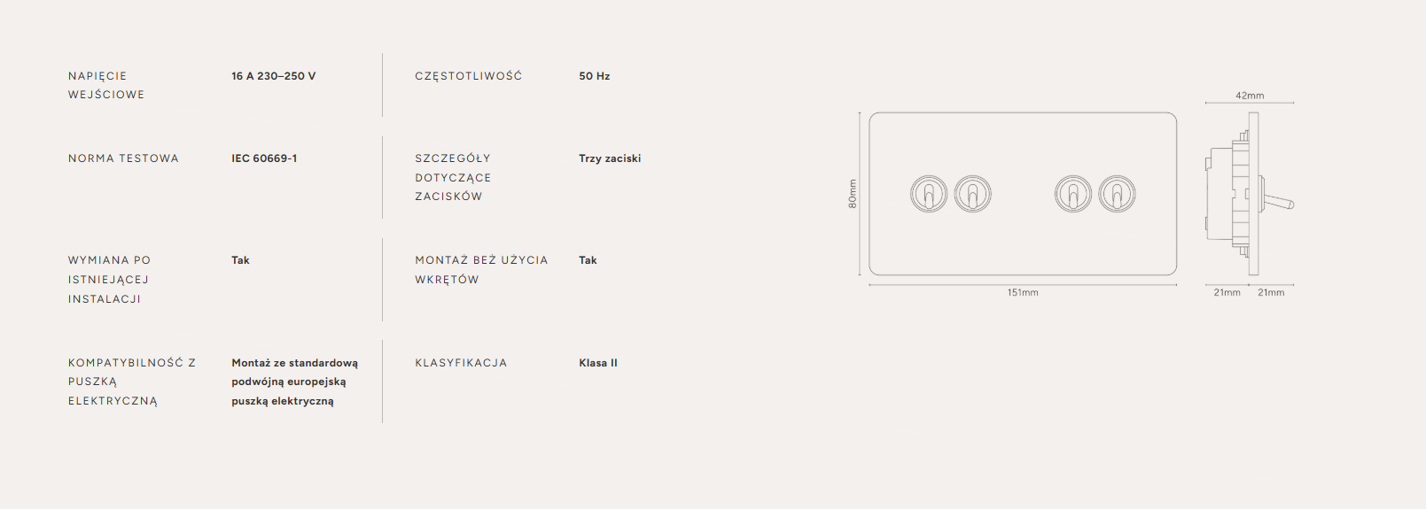 Nasz dwukierunkowy włącznik dźwigniowy x 4 w podwójnej ramce to nowoczesna wersja klasycznego projektu. Został stworzony z myślą o elegancji i klasyce. Będzie wyglądać ponadczasowo w każdym pomieszczeniu.