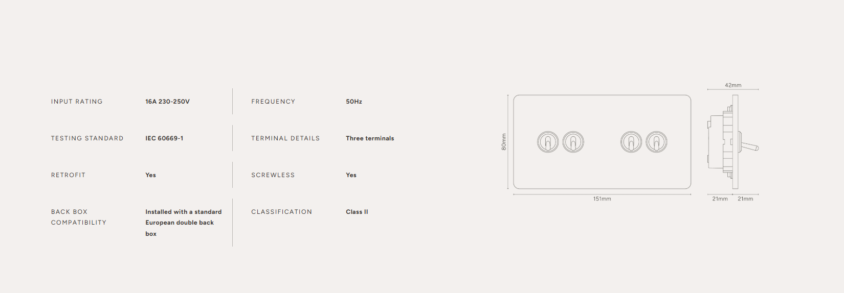 Nasz dwukierunkowy włącznik dźwigniowy to nowoczesna wersja klasycznego projektu. Stworzyliśmy go z myślą o elegancji i klasyce, dzięki czemu wygląda ponadczasowo w każdym pomieszczeniu.