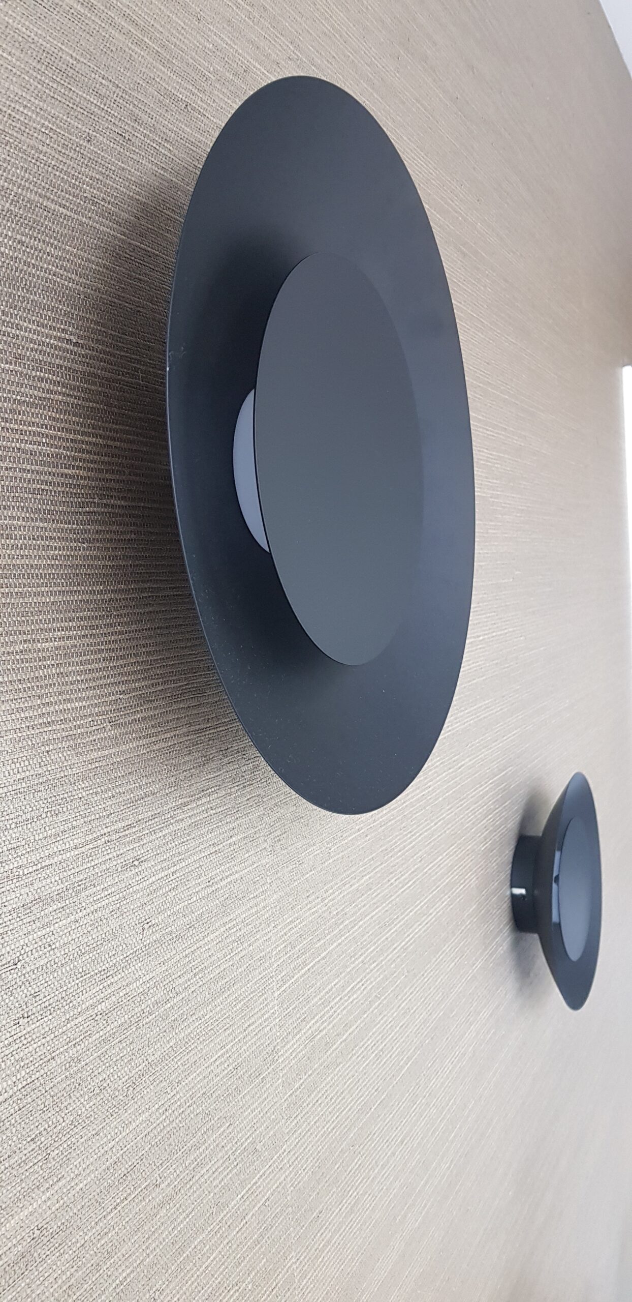 Lampa ścienna – kinkiet OSKAL w rozmiarze M W ofercie również kinkiet OSKAL o mniejszym rozmiarze L Kinkiet wykonany z metalu polakierowanego na czarny. Między talerzami lampy zastosowano ciepły LED, który daje delikatną ale efektowną poświatę. Dzięki temu ,że występuję w dwóch różnych rozmiarach daje możliwość tworzenie indywidualnych instalacji. Kinkiet proponowany jako oświetlenie dodatkowe- dekoracyjne.