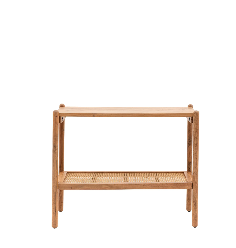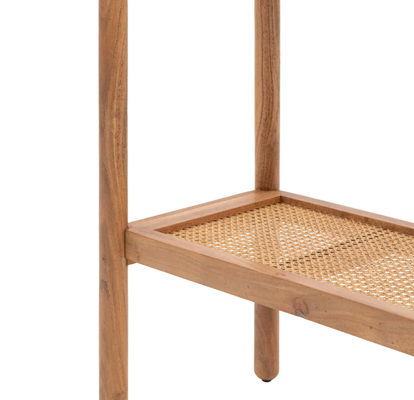 Zainspirowany stylem boho konsola wykonana została z drewna akacjowego o bogatym usłojeniu. Posiada ona niską, plecioną półkę z rattanu, idealną do przechowywania. Idealnie pasuje zarówno do nowoczesnych, jak i stylizowanych na vintage wnętrz.