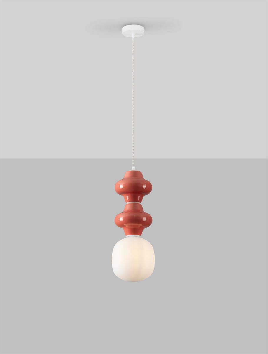Lampa sufitowa koralowa HIC to ciekawa i delikatna lampa o wysokości 215 cm, idealna do jadalni lub nad wyspę w kuchni. Wykonaliśmy ją ze szkła i ceramiki w odcieniach koralowy. Dzięki temu wnosi nowoczesny styl i subtelną elegancję do każdego wnętrza.