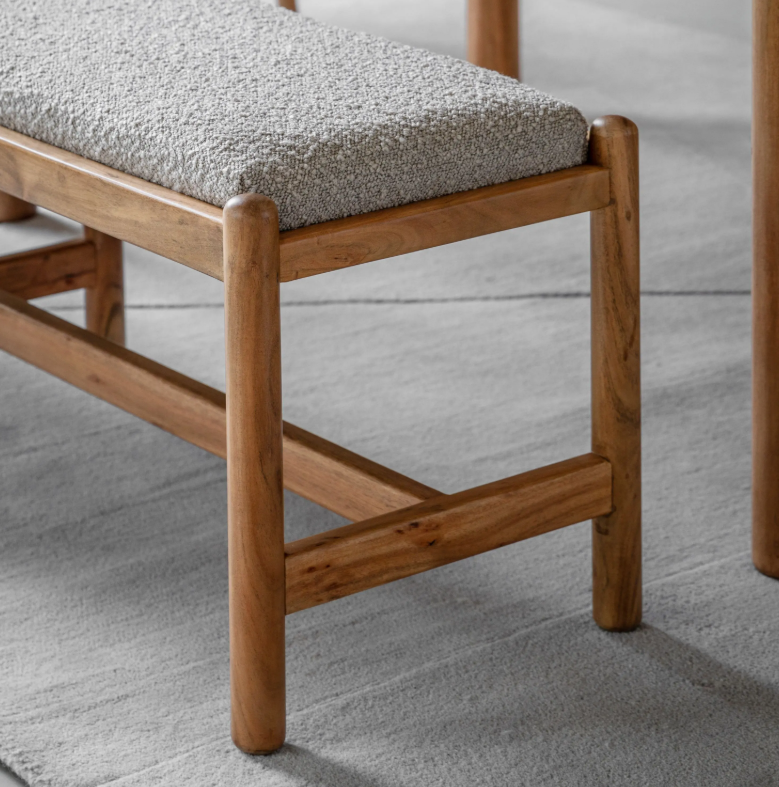 Ławeczka Cannes jest idealnym uzupełnieniem naszego stołu Cannes . Wyjątkowa ławka wykonana została z litego drewna akacjowego, obita przyjemną w dotyku szarą tkaniną Boucel,. Ławka może stać się wyjątkowym akcentem jadalni. Dostępne są również pasujące elementy, jak: komoda, stolik kawowy, stół, stolik przyboczny, regał czy komoda RTV.