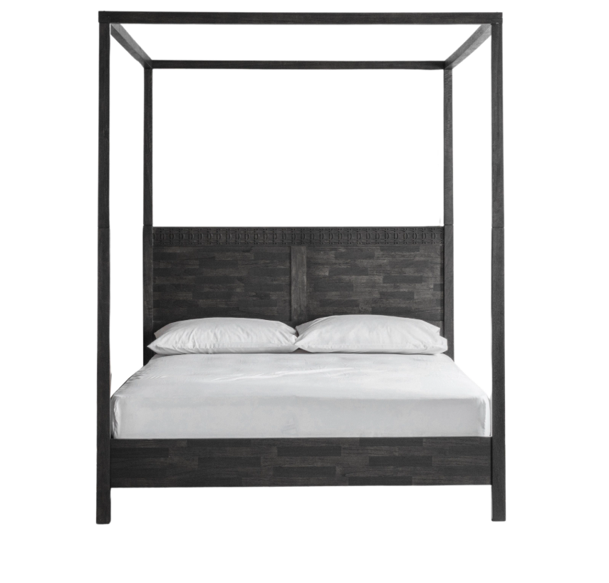 Wykonany z litego drewna mango z fornirami z drewna tekowego, mahoniu, jesionu Mindy i mango, które tworzą kontrast i uwydatniają intarsjowany wzór. Ma oszałamiające brązowe wykończenie – zróżnicowane usłojenie drewna uwydatnia się w świetle i przyciąga wzrok tym pięknym detalem.