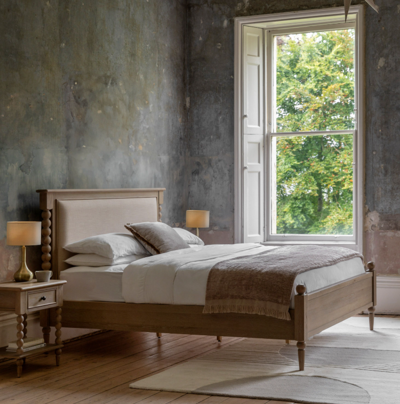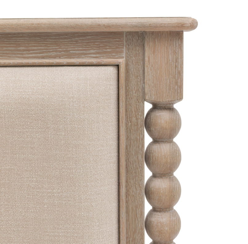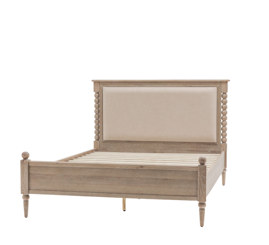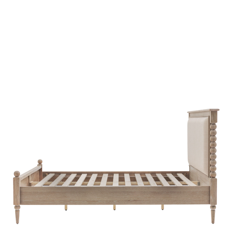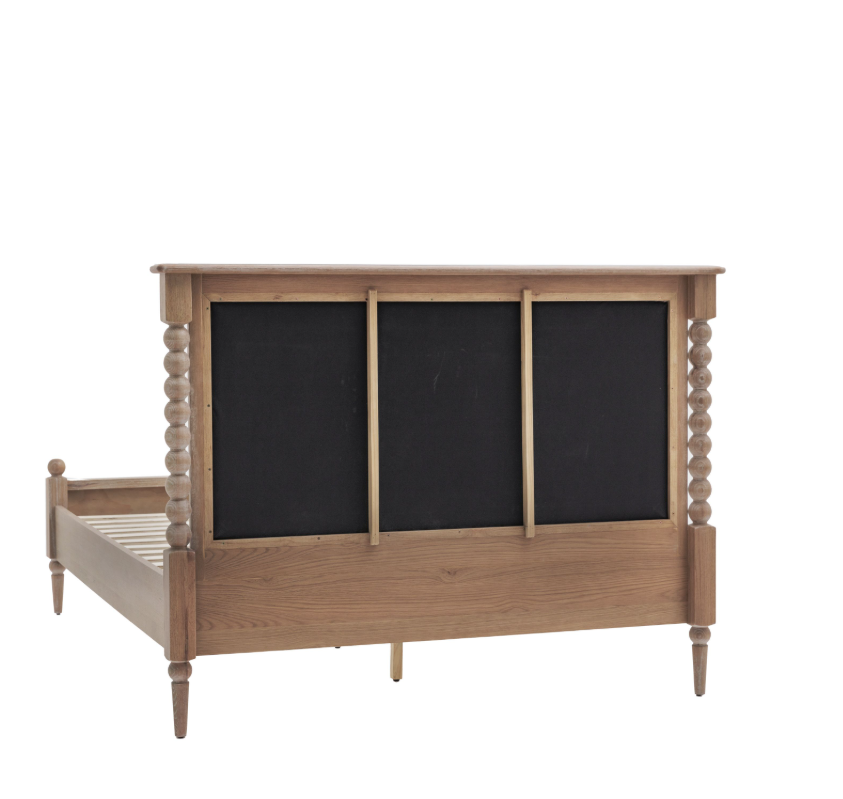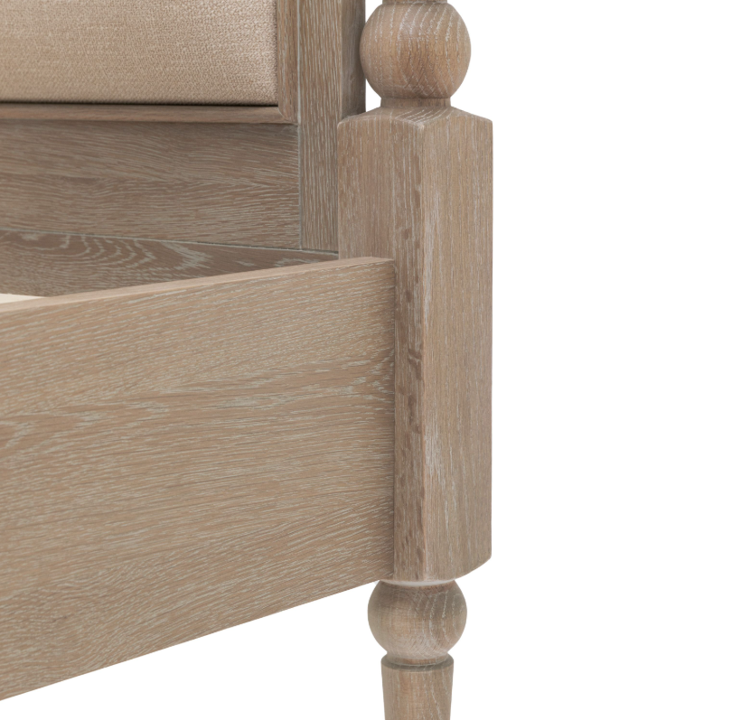 Łóżko drewniane Artisan 150 cm łączy ponadczasowy design z najwyższą jakością wykonania. Zdobione ręcznie z toczonymi detalami, wykonane jest z dębu z delikatnym, bielonym wykończeniem, tworząc ciepłą i zachęcającą estetykę.