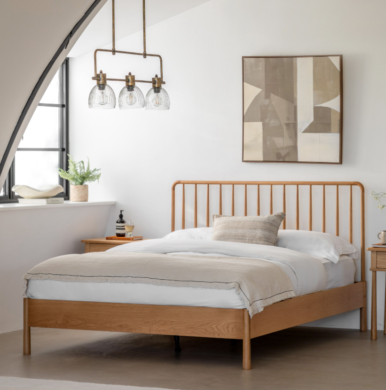 Łóżko Wycombe 150cm brązowe to klasycznie stylowa seria, która została wykonana z połączenia najwyższej jakości litego dębu i forniru. Jest wierna swojemu XIX-wiecznemu wzornictwu z nowoczesnym akcentem. Nowe, czarne wykończenie tego łóżka wrzecionowego wprowadza estetykę inspirowaną stylem boho, która z pewnością zrobi wrażenie w Twoim salonie.