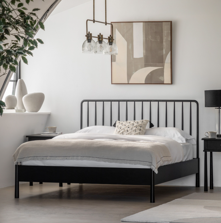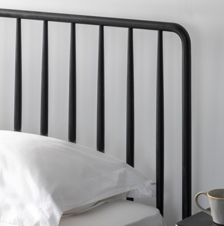 Łóżko Wycombe 150cm czarne to klasycznie stylowa seria, która została wykonana z połączenia najwyższej jakości litego dębu i forniru. Jest wierna swojemu XIX-wiecznemu wzornictwu z nowoczesnym akcentem. Nowe, czarne wykończenie tego łóżka wrzecionowego wprowadza estetykę inspirowaną stylem boho, która z pewnością zrobi wrażenie w Twoim salonie.