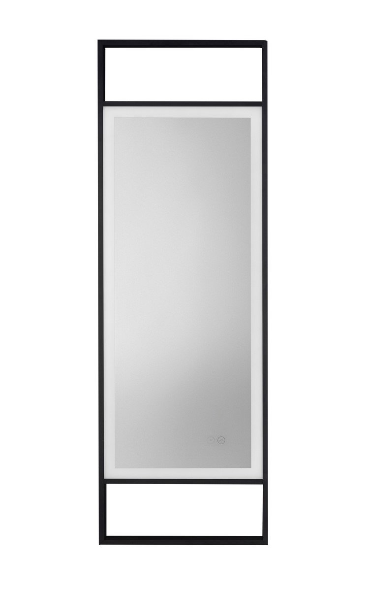 Szerokie lustro OUL w prostokątnej formie, otoczone czarną metalową ramą, które doskonale łączy minimalistyczny design z funkcjonalnością. Wbudowane podświetlenie LED sterowane dotykiem zapewnia równomierne światło, idealne do codziennego użytkowania.