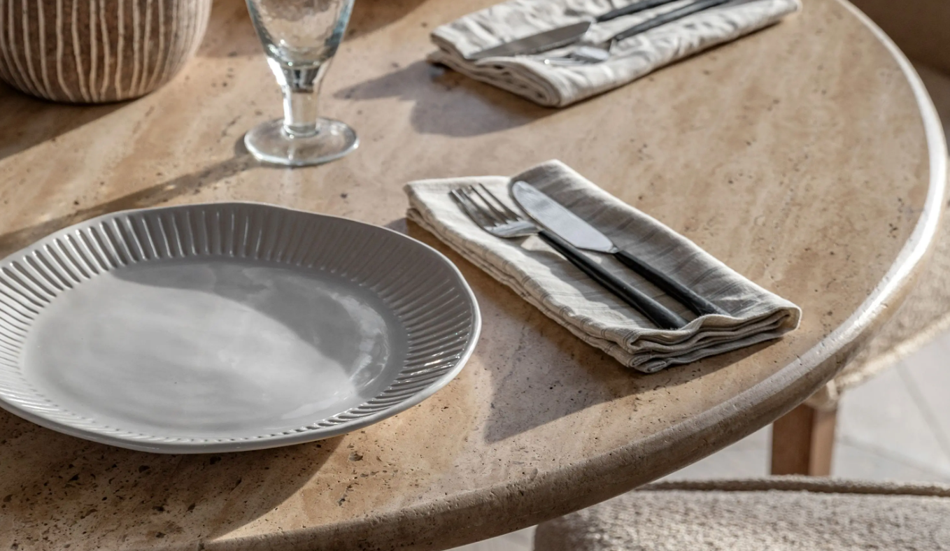 Stół do jadalni Sculpt 110cm to solidnie wykonany stół jadalniany o wyrazistym, retro wyglądzie. Blat wykonany została z trawertynu, a jego podstawa wykonana jest z litego drewna mango. Jej ciemno czekoladowa kolorystyka uzupełnia beżową kolorystykę blatu. Stół do jadalni Sculpt 110cm to przykład angielskiej solidności i kunsztu stolarskiego.