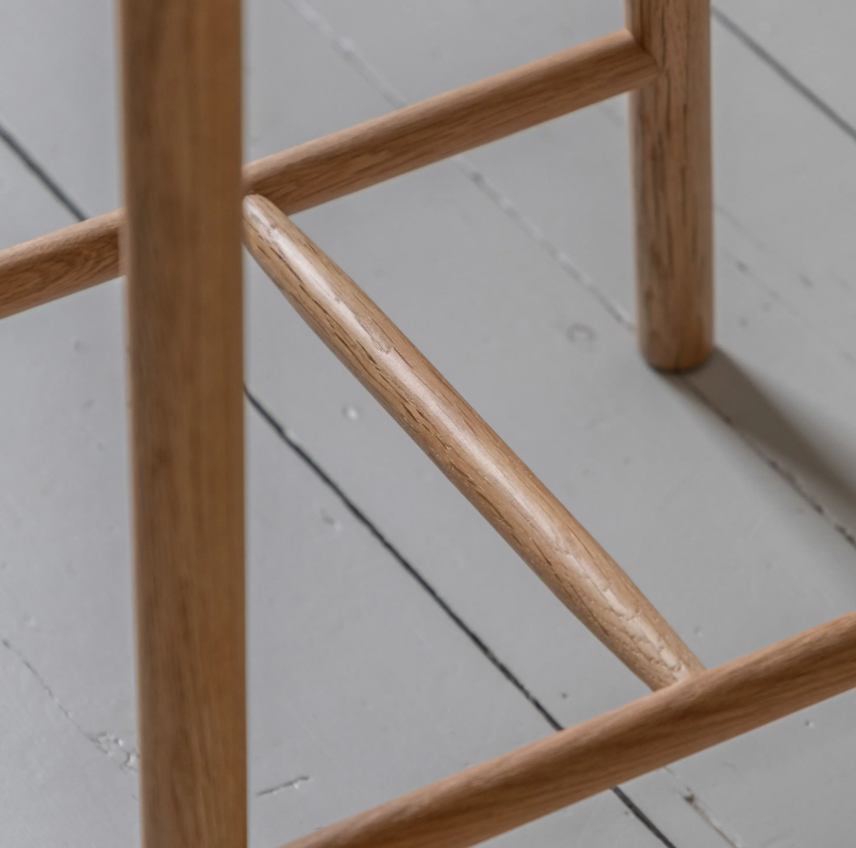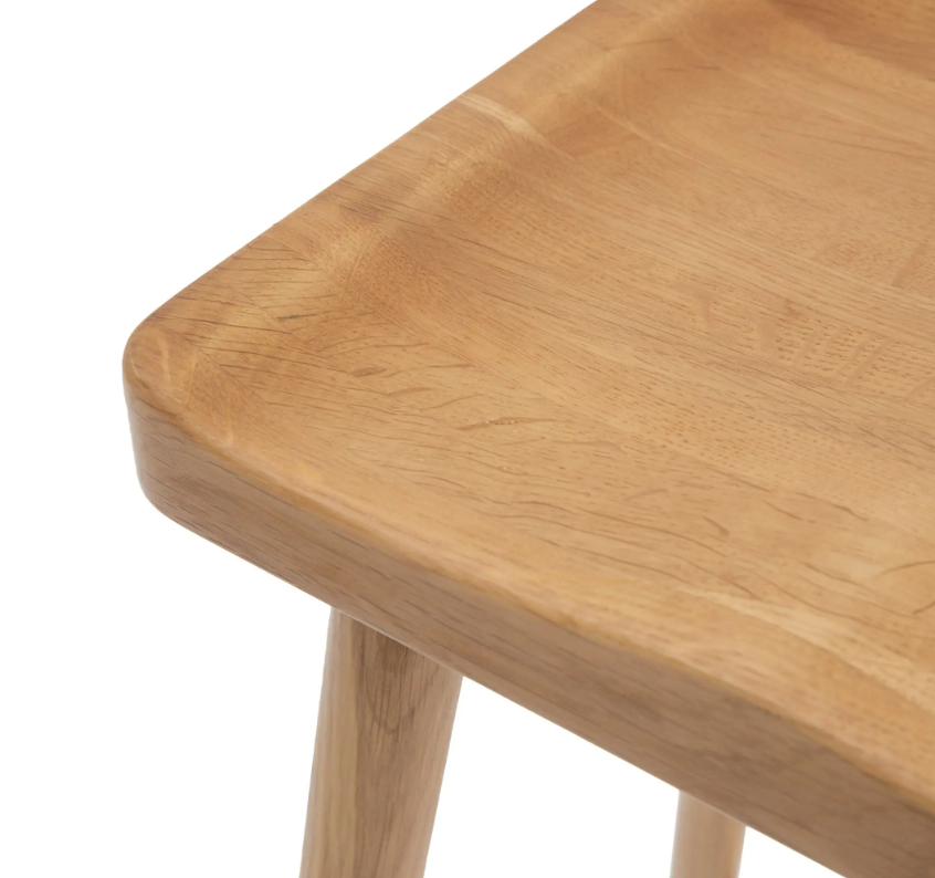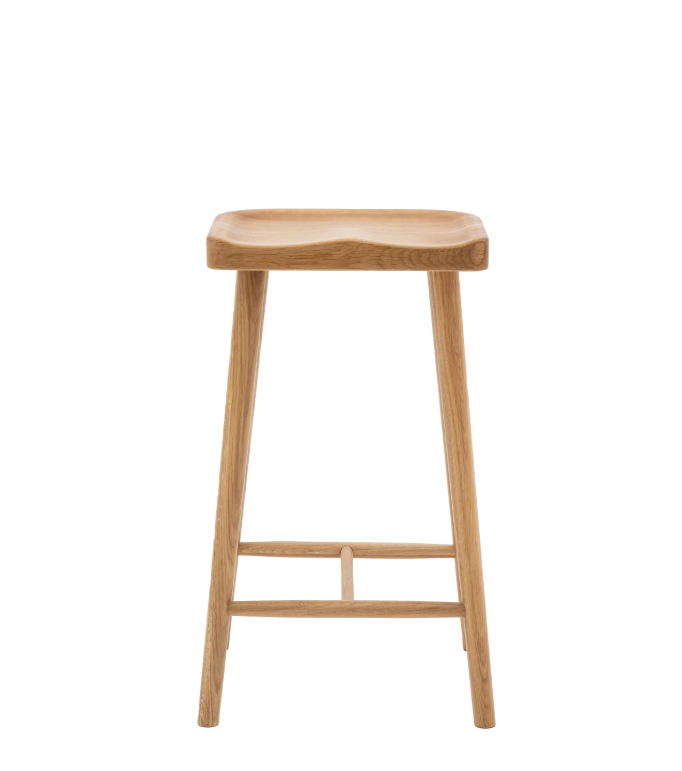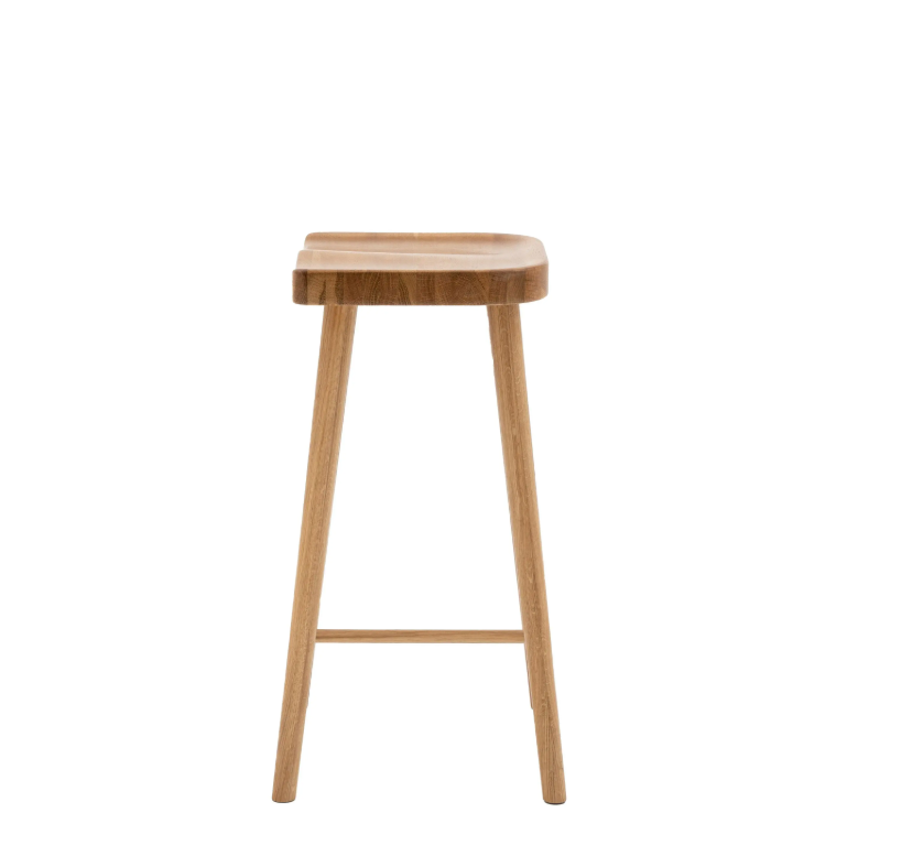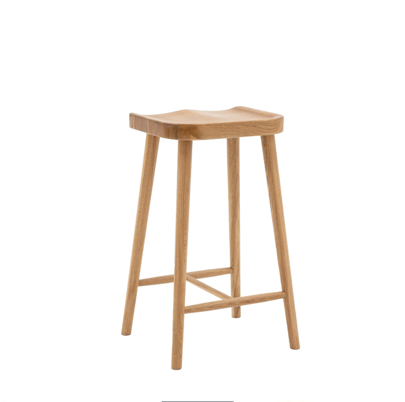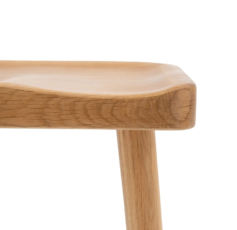 Ten hoker barowy, wykonany z zachwycającego, naturalnego drewna, jest elegancki i prosty. Z profilowanym siedziskiem siodłowym i smukłymi, zwężanymi nogami, jest prosty i szykowny, idealnie pasując do różnych stylów wnętrz.
