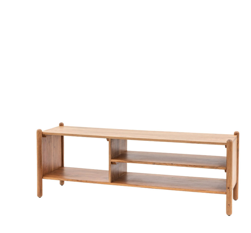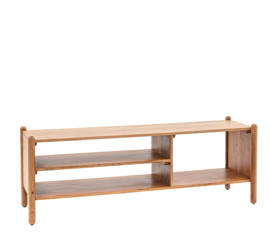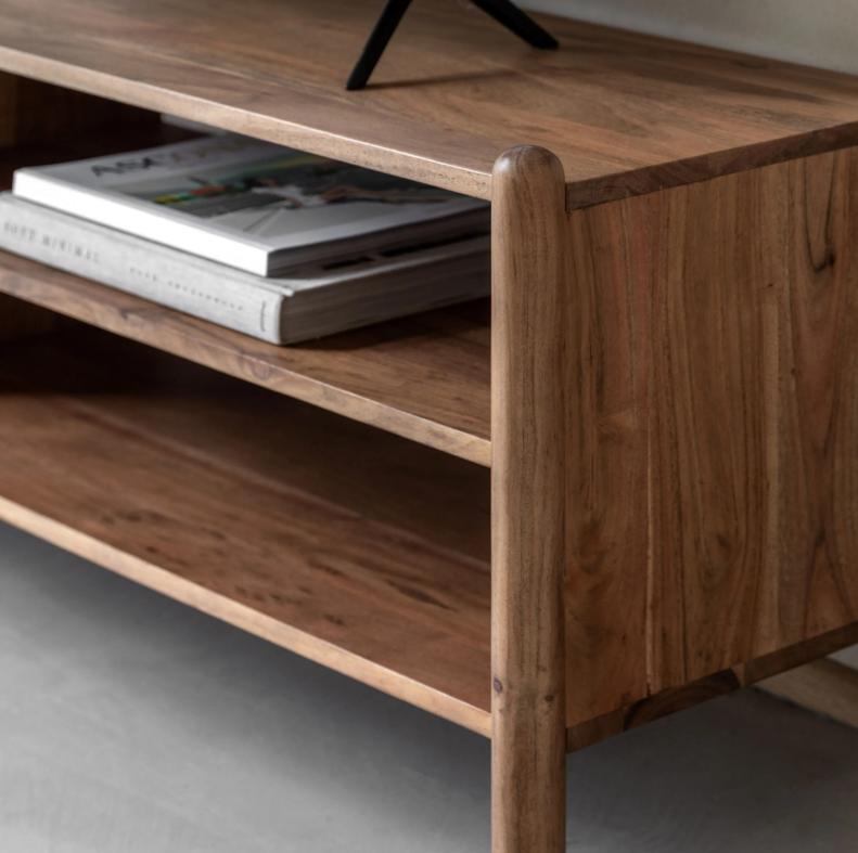 Wykonana z litego drewna akacjowego, z dzielonymi półkami oferuje mnóstwo miejsca na całą elektronikę, nie rezygnując przy tym ze stylu. Dostępne są również pasujące elementy.