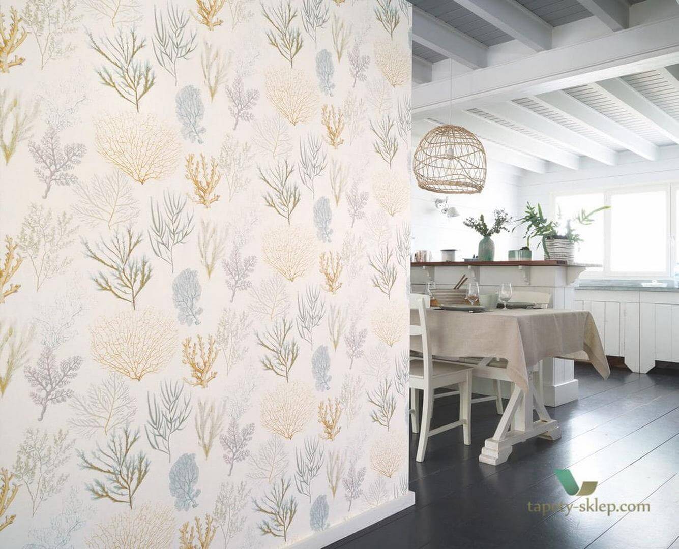 Tapeta z pięknym wzorem przedstawiającym koralowce. Dzięki tapecie Corali bez problemu stworzycie Państwo we wnętrzu aranżacje w nadmorskim klimacie. Tapeta francuskiej firmy Casadeco pochodzi z marynistycznej kolekcji Rivage. Przepiękny motyw został wykonany z winylu, który charakteryzuje się bardzo dobrą odpornością na zmywanie oraz uszkodzenia mechaniczne. Dzięki temu tapeta winylowa może być wykorzystana w każdym domowym wnętrzu. Bardzo dobrze będzie się prezentować w salonie oraz sypialni, bez problemu odnajdzie się jako tapeta do kuchni oraz do łazienki (w części suchej), wspaniale będzie się także eksponować w formie tapety do przedpokoju lub holu. Możliwości jest bardzo dużo, a każda z nich będzie równie zniewalająca.