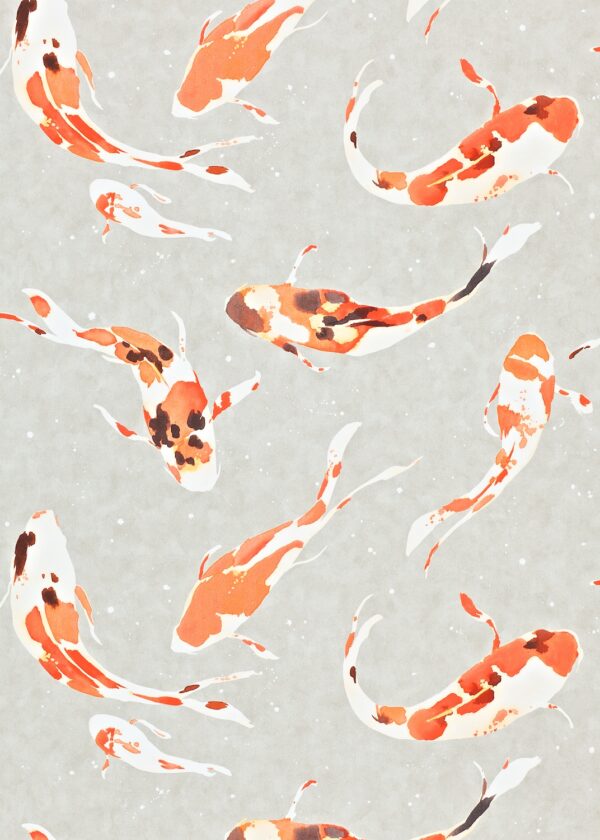 Przepiękna tapeta KOI w ryby. Wzór kolorowych rybek na lekko opalizującym metalicznym tle. Tapeta występuje w kilku wersjach kolorystycznych.