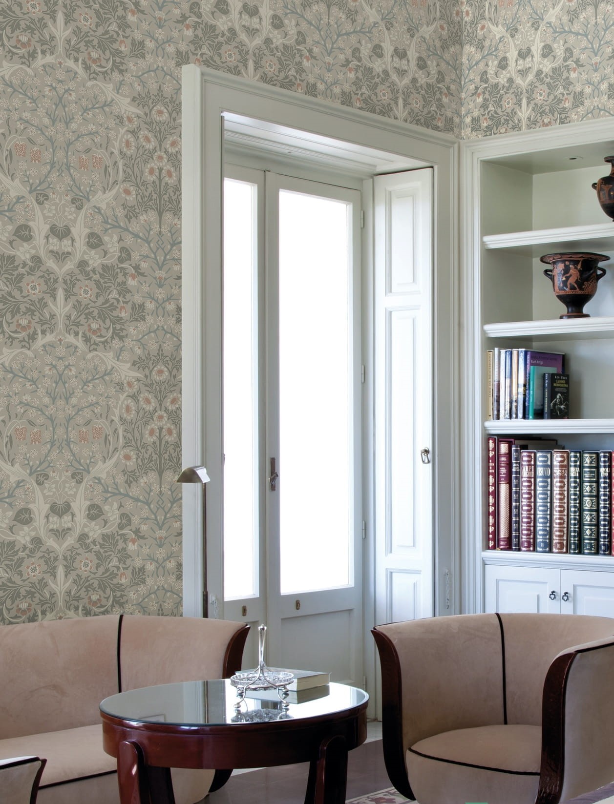 Wzór doskonale sprawdzi się w klasycznych, brytyjskich aranżacjach, na akcentowej ścianie salonu, jadalni oraz sypialni. Tapeta pochodzi od amerykańskiej marki KT Exclusive z kolekcji British Heritage, która zainspirowana jest oryginalnymi projektami artysty Williama Morrisa oraz innych brytyjskich projektantów. Wzór dostępny jest w pięciu wariantach kolorystycznych.
