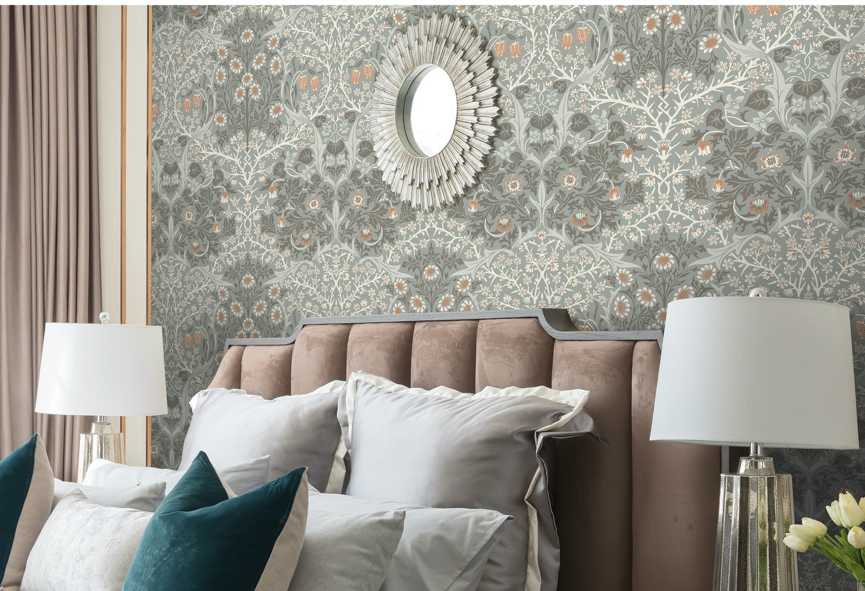 Wzór doskonale sprawdzi się w klasycznych, brytyjskich aranżacjach, na akcentowej ścianie salonu, jadalni oraz sypialni. Tapeta pochodzi od amerykańskiej marki KT Exclusive z kolekcji British Heritage, która zainspirowana jest oryginalnymi projektami artysty Williama Morrisa oraz innych brytyjskich projektantów. Wzór dostępny jest w pięciu wariantach kolorystycznych.