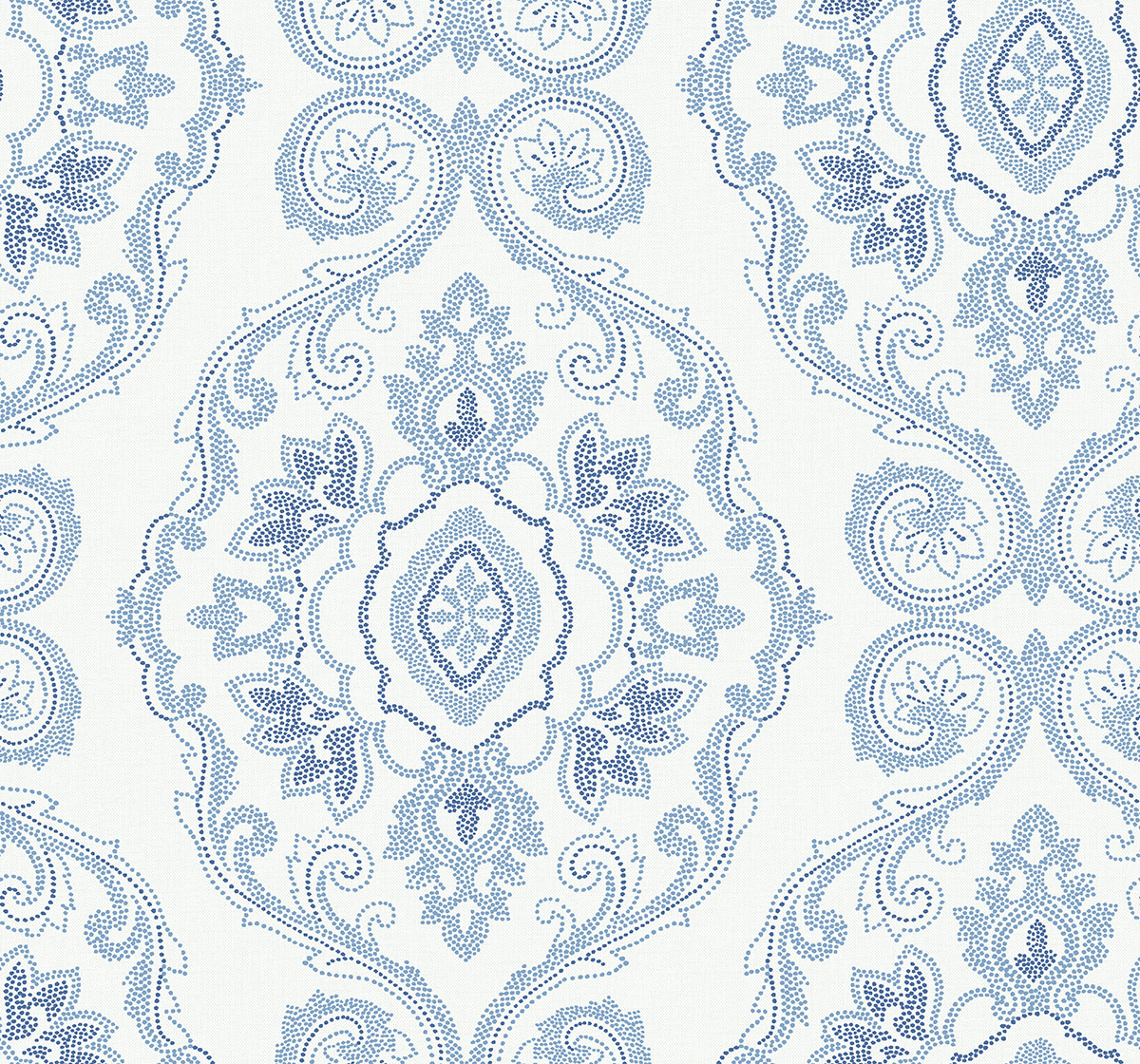 Tapeta marki Seabrook z kolekcji Beach House wzór przedstawia delikatny ornament. Ciekawa propozycja podkreśli charakter wnętrz zaaranżowanych w stylu marinistycznym czy hampton. Z powodzeniem wzór wykorzystać można również we wnętrzach zaprojektowanych w orientalnym charakterze. Interesujące rozmieszczenie małych kropek tworzy cały wzór, ornament, który doda każdej przestrzeni szyku i elegancji.