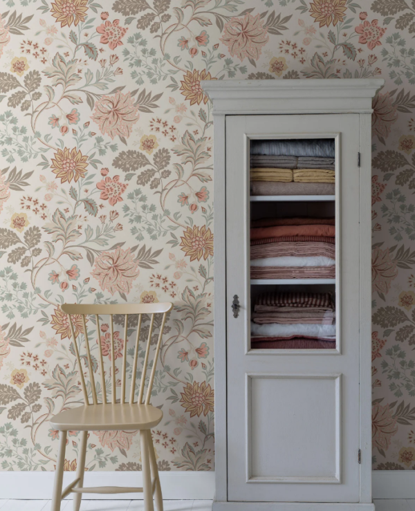 Tapeta Alicia w pastelowych kolorach  wprowadza do otaczającej przestrzeni zarówno jasne, jak i kolorowe elementy, tworząc przytulną wiejską estetykę. Dzięki wspaniałemu kwiatowemu wzorowi, który nadaje całemu pomieszczeniu luksusowo elegancki charakter, dodaje Twojemu domowi świadomego stylu, a jednocześnie tradycyjnego uroku.