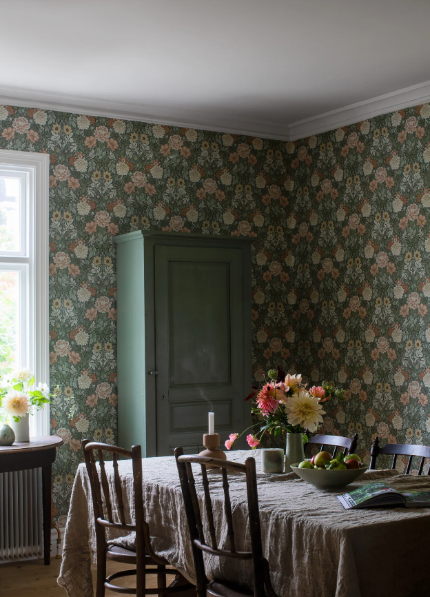 Pokolorowana paletą bogatych i żywych odcieni nasza tapeta Dahlia Garden łączy odcienie zieleni z rdzawymi czerwieniami i żółciami, tworząc estetykę vintage przepełnioną rustykalnym urokiem. Zielone kwiaty i szczegółowe liście tworzą piękno późnych letnich dni, tworząc w Twoim domu kojące i harmonijne sanktuarium. Powieś go w salonie, kuchni lub jadalni, aby uzyskać niewymuszoną elegancję.