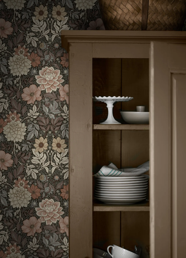 Dahlia Garden to nietuzinkowa tapeta utrzymana w klimacie vintage. Te okazałe kwitnące kwiaty i zawiłe gałązki tworzą powtarzalny wzór w stylu geo-florystycznym. Paleta barw utrzymana w pastelowych odcieniach potęguje wrażenie retro wydruku. Tapeta Dahlia garden idealnie wkomponuje się w klimat sypialni, pokoi dziecięcych, jadalni a nawet kuchni.